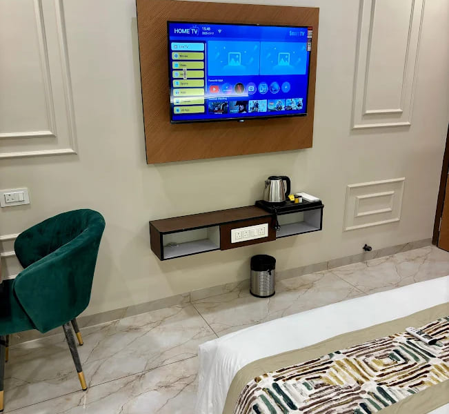 The Super Deluxe Room is designed to provide guests with a luxurious and comfortable stay, combining elegance, spaciousness, and modern amenities for an exceptional experience. The room features a plush bed with premium linens, stylish furnishings, air-conditioning, and a well-equipped bathroom, creating a serene and inviting atmosphere. Ideal for travelers seeking both comfort and sophistication, the Super Deluxe Room offers a peaceful retreat where guests can relax, work, or unwind in style, ensuring a memorable and refreshing stay that exceeds expectations.